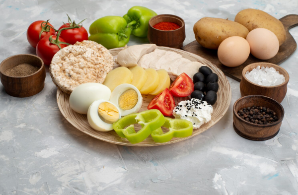 단백질 공급원은 지방이 적은 생선(고등어, 꽁치, 삼치), 두부, 닭가슴살, 콩류 등으로 구성하는 것이 좋습니다. 붉은 고기보다는 흰 살 생선 위주로 하고, 튀기기보다는 굽기, 찌기, 데치기 방식을 활용하세요.