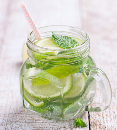 - 레몬 조각과 민트를 넣고 얼음과 함께 쉐이커에 흔들거나 냉장 숙성.