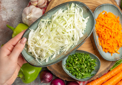 다이어트 중 식단 조절로 인해 영양 불균형이 생기기 쉬운데, 양배추는 다양한 비타민과 미네랄을 보충해 균형 잡힌 영양 공급을 유지하게 해줍니다. 샐러드, 양배추 스테이크, 양배추즙 등으로 섭취하면 하루 식단의 칼로리를 낮추면서도 영양은 챙길 수 있는 것이 큰 장점입니다.
