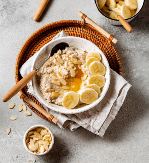 - 귀리로 만든 오트밀을 우유나 두유, 요거트에 타서 섭취